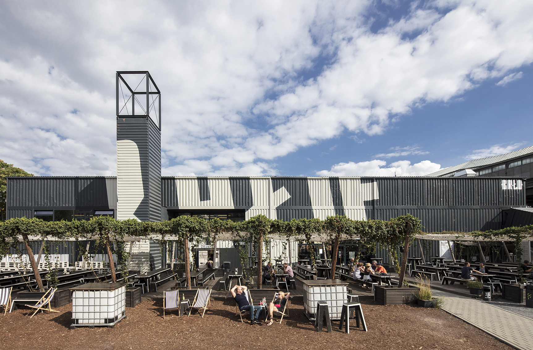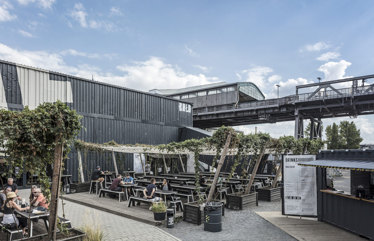 Kultige Gastronomie am neu angelegten Park Am Gleidreieck – ein ehemaliger Schienenknotenpunkt im Süden Berlins wo die alten Gleisanlagen heute teilweise vom Wald zurückerobert wurden und sich dem Spaziergänger mitten im Dickicht plötzlich eine alte Dampflok präsentiert.