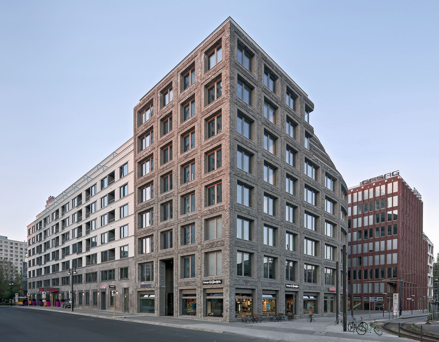 Zwei durch eine Fußgängerstraße zum Hackeschen Markt getrennte Büroblocks, die von namhaften Architekturbüros individuell gestaltet wurden. Ebenso namhaft die Nutzer der Flächen: Die Scholz&Friends AG, die GASAG oder das Adina Hotel.