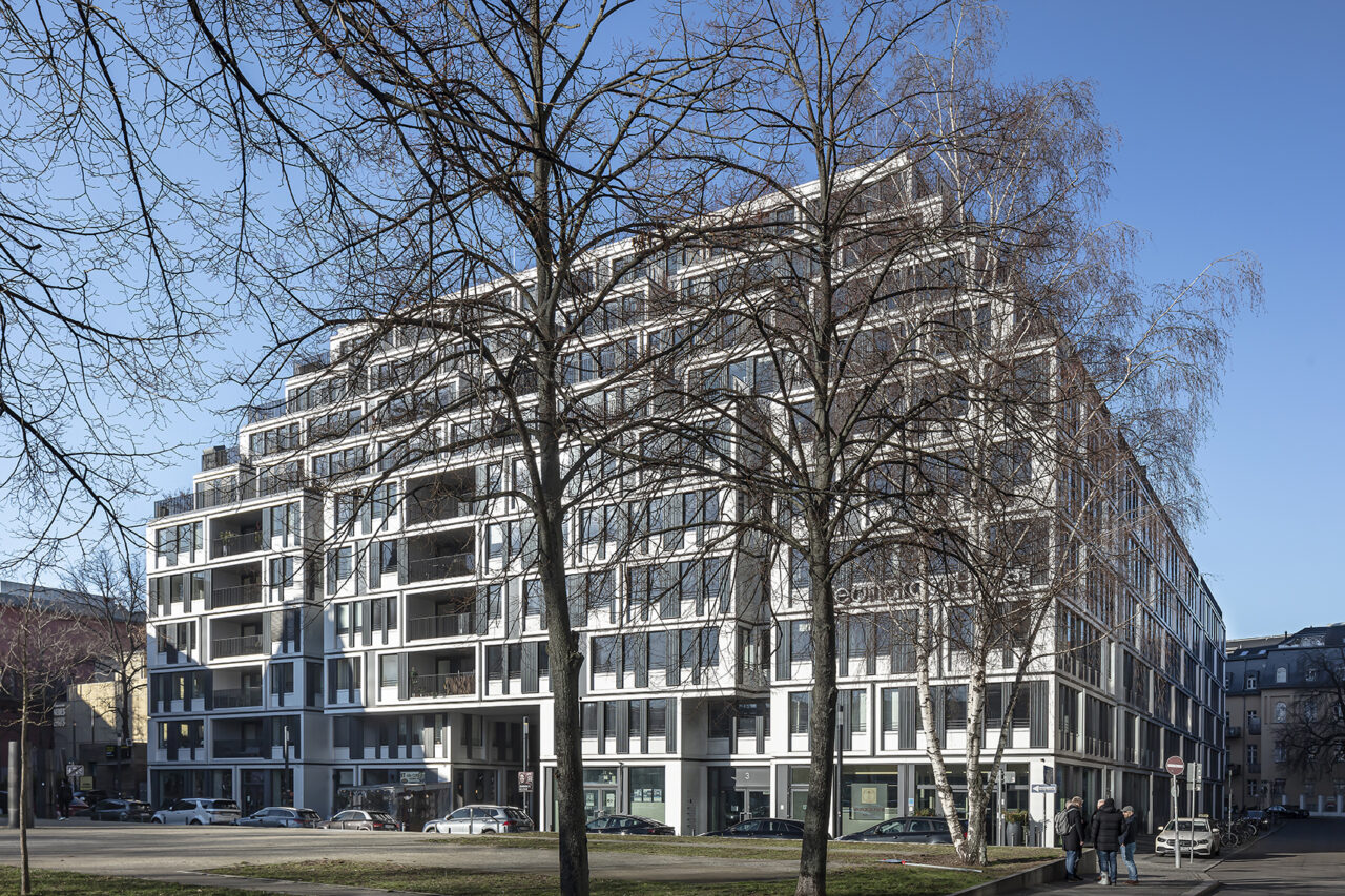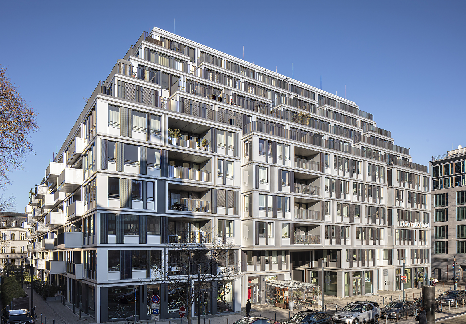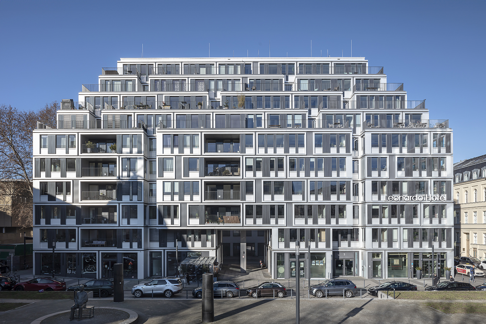 In ebenso prominenter, wie markanter Lage, von der Spree durch eine großzügige Platzanlage getrennt, erhebt sich mit zehn Stockwerken der mächtige Solitär, dessen Volumen durch die vier zurückgestaffelten Obergeschossen optisch gemindert wird. Links des Gebäudes findet sich das Berliner Ensemble. Auf dem Baugrund selbst stand bis Ende der 1980er-Jahre das von Max Reinhardt betriebene Große Schauspielhaus – ein Umbau des einstigen Zirkus Schuhmann, der namensgebend für die Adresse am Schiffsbauerdamm in Berlin ist.