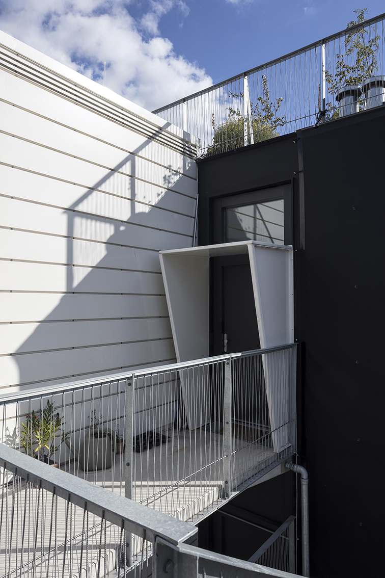 Auf nicht ganz einfach zu bebauendem Grundstück entstand durch organe architekten ein innovativer Neubau, der sich Baukonstruktionen ohne Verbundwerkstoffe zum sortenreinen Rückbau und Recycling verschrieben hat. Auf einfachem Gebäuderaster entstanden flexible, umnutzbare Raumstrukturen, die gleichermaßen Kommunikation wie auch Privatheit gewährleisten.